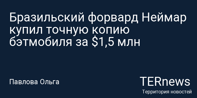 Бразильский нападающий Неймар, представляющий клуб «Сантос», стал владельцем точной реплики бэтмобиля, известного по фильмам о супергерое Бэтмене, снятом Кристофером Ноланом. Спортсмен поделился этой новостью в соцсетях. За эту необычную покупку Неймар выложил 1,5 миллиона долларов.