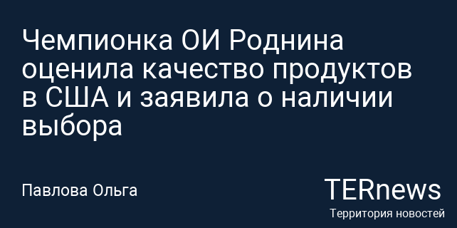 Роднина подчеркнула, что в США существует право выбора, позволяющее каждому выбирать продукты по своему усмотрению. "Если какой-то товар вас не устраивает, всегда можно найти альтернативу. В Америке действительно можно встретить продукты разного качества. Конечно, более качественные товары зачастую стоят дороже, но в этом нет ничего страшного", — заявила она.