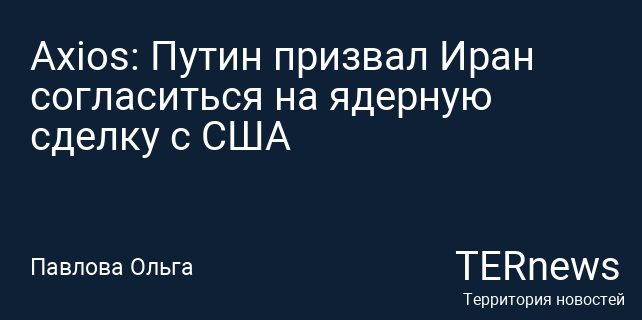 Axios: Путин призвал Иран согласиться на ядерную сделку с США