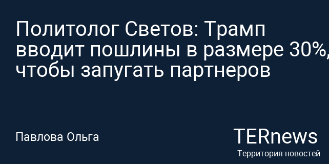 Политолог Светов: Трамп вводит пошлины в размере 30%, чтобы запугать партнеров