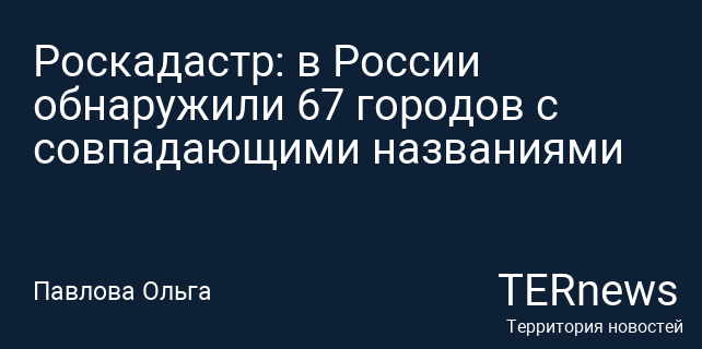 Роскадастр: в России обнаружили 67 городов с совпадающими названиями