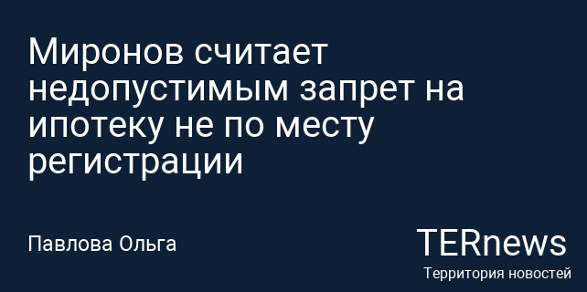 Миронов считает недопустимым запрет на ипотеку не по месту регистрации