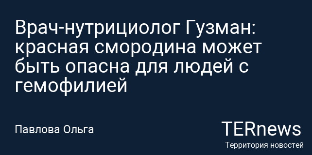 Врач-нутрициолог Гузман: красная смородина может быть опасна для людей с гемофилией