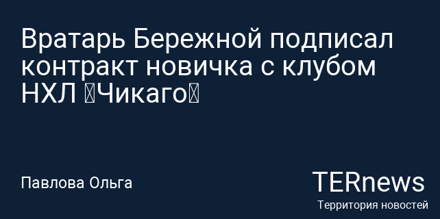 Вратарь Бережной подписал контракт новичка с клубом НХЛ «Чикаго»