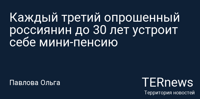 Каждый третий опрошенный россиянин до 30 лет устроит себе мини-пенсию