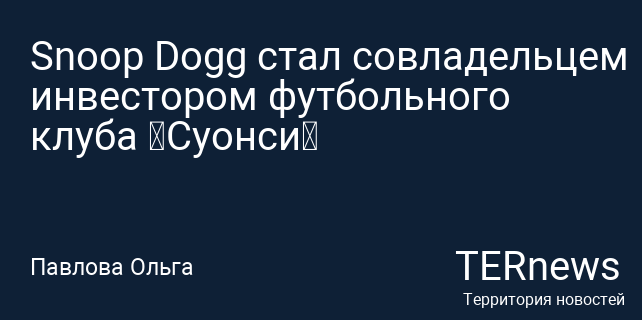 Американский рэпер Snoop Dogg теперь является совладельцем валлийского футбольного клуба «Суонси», который выступает в Чемпионшипе, втором по значимости турнире Англии. Об этом стало известно из официального сообщения клуба. Артист отметил, что его привлекла история клуба и сам район, подчеркнув, что это гордый и трудолюбивый город, а сам клуб представляет собой настоящего андердога. Он выразил гордость от того, что теперь является частью «Суонси», и с нетерпением ждет возможности познакомиться с его фанатами.