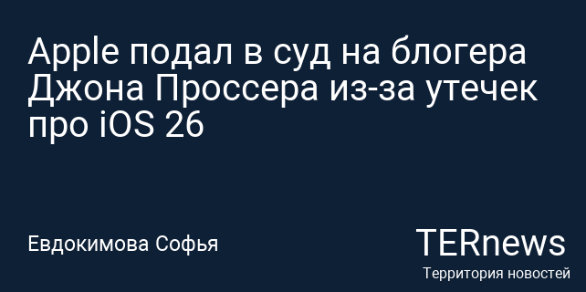 Корпорация Apple инициировала судебное разбирательство против блогера Джона Проссера, обвинив его в распространении конфиденциальной информации о новой iOS 26. Иск был зарегистрирован в федеральном суде Северного округа Калифорнии 17 июля 2025 года.