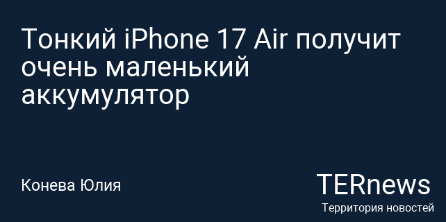 Тонкий iPhone 17 Air получит очень маленький аккумулятор