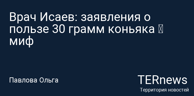Врач Исаев: заявления о пользе 30 грамм коньяка – миф