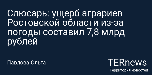 Слюсарь: ущерб аграриев Ростовской области из-за погоды составил 7,8 млрд рублей