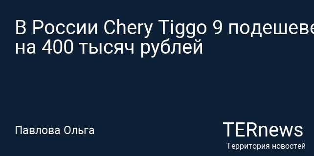 В России Chery Tiggo 9 подешевел на 400 тысяч рублей