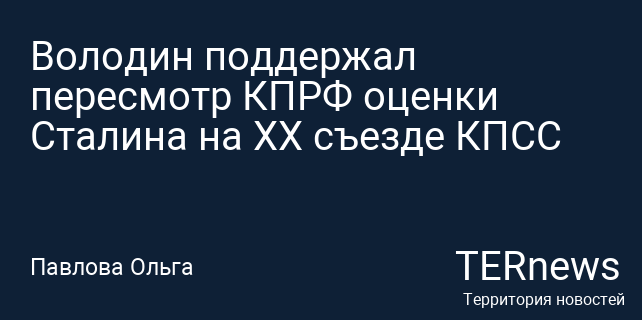 Председатель Государственной думы Вячеслав Володин высказал одобрение инициативе КПРФ пересмотреть решения, принятые на XX съезде КПСС, где Никита Хрущев осудил культ личности Иосифа Сталина. По информации ТАСС, Володин отметил, что это решение создало негативный имидж советского лидера, который, по его словам, приложил все усилия для достижения победы в Великой Отечественной войне и укрепления государства.
