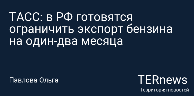 ТАСС: в РФ готовятся ограничить экспорт бензина на один-два месяца