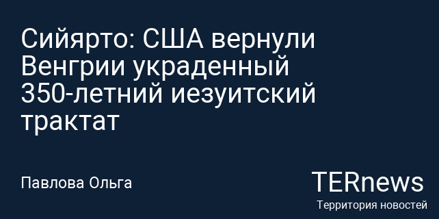 Сийярто: США вернули Венгрии украденный 350-летний иезуитский трактат