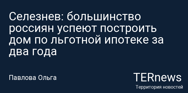 Селезнев: большинство россиян успеют построить дом по льготной ипотеке за два года