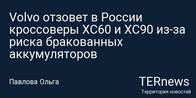 Volvo отзовет в России кроссоверы XC60 и XC90 из-за риска бракованных аккумуляторов