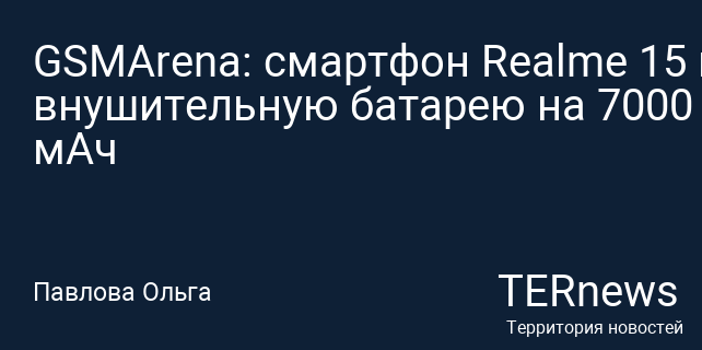 GSMArena: cмартфон Realme 15 получил внушительную батарею на 7000 мАч