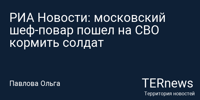 РИА Новости: московский шеф-повар пошел на СВО кормить солдат