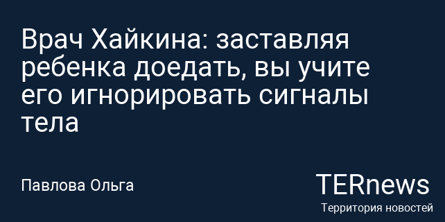 Врач Хайкина: заставляя ребенка доедать, вы учите его игнорировать сигналы тела