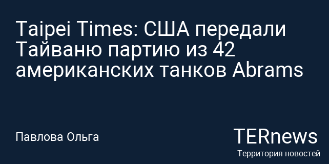 Taipei Times: США передали Тайваню партию из 42 американских танков Abrams