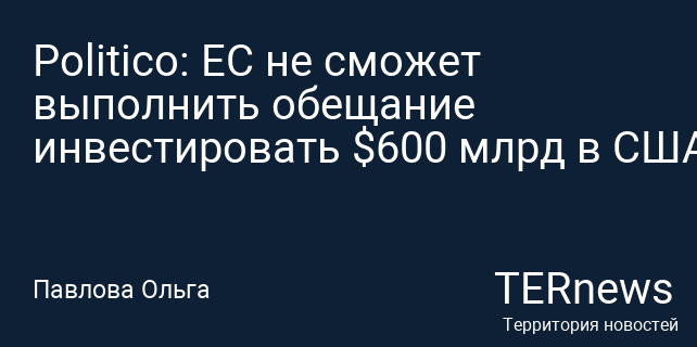 Politico: ЕС не сможет выполнить обещание инвестировать $600 млрд в США