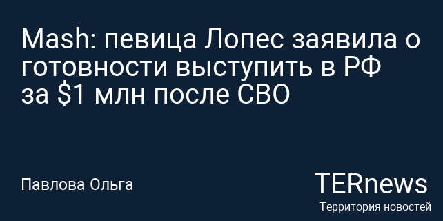 Mash: певица Лопес заявила о готовности выступить в РФ за $1 млн после СВО