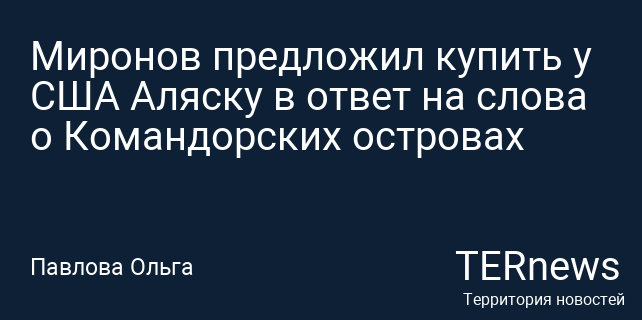 Председатель партии «Справедливая Россия — За правду» Сергей Миронов высказал мнение, что Россия могла бы задуматься о возвращении Аляски, если Соединенные Штаты серьезно рассматривают возможность покупки Командорских островов. Он отметил, что такая сделка могла бы стать ответом на действия Вашингтона. «Жизнь расставит все по местам», — добавил он, подчеркивая, что предложения американцев не учитывают мнения местных жителей этих территорий.