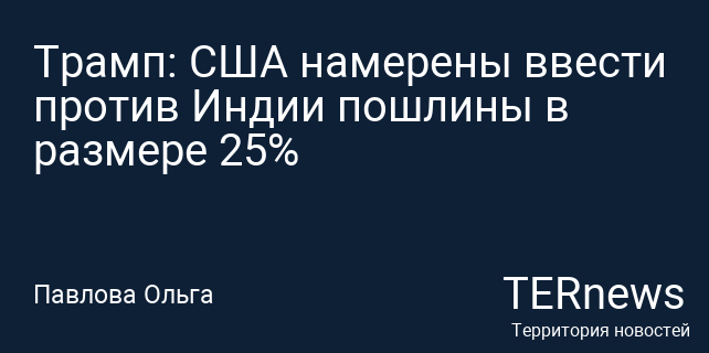 Президент США Дональд Трамп заявил о намерении ввести импортные пошлины в размере 25% на товары, поставляемые из Индии. Эта информация была озвучена в интервью, которое Трамп дал журналистам во время полета из Шотландии в Америку.