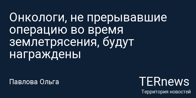 Онкологи, не прерывавшие операцию во время землетрясения, будут награждены