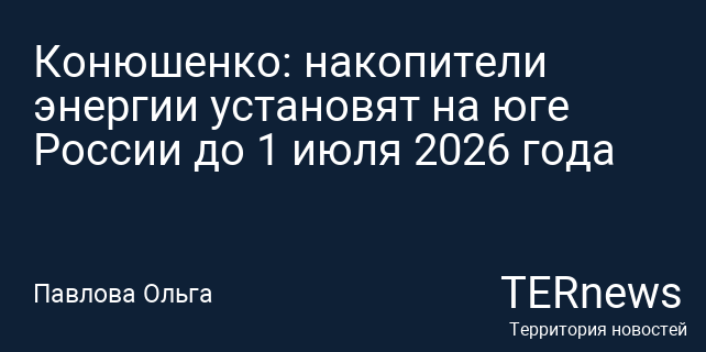 Конюшенко: накопители энергии установят на юге России до 1 июля 2026 года