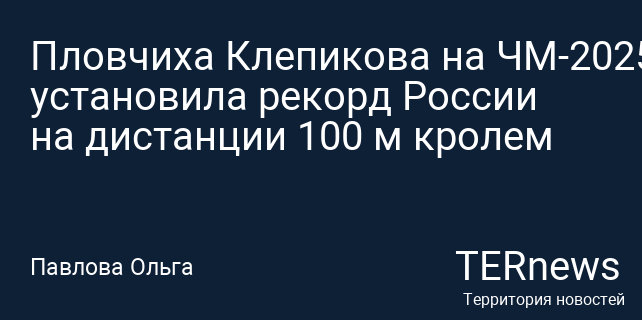 Пловчиха Клепикова на ЧМ-2025 установила рекорд России на дистанции 100 м кролем