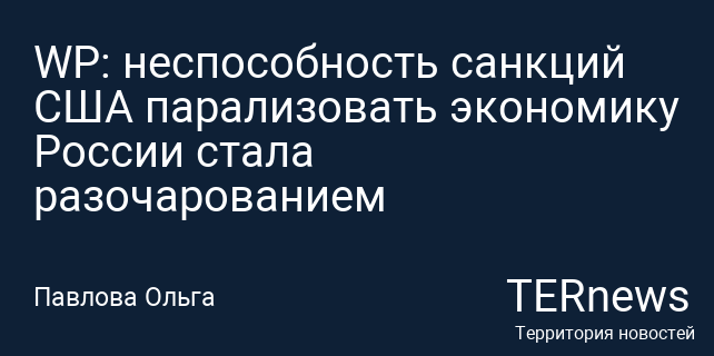 WP: неспособность санкций США парализовать экономику России стала разочарованием