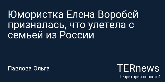Юмористка Елена Воробей призналась, что улетела с семьей из России