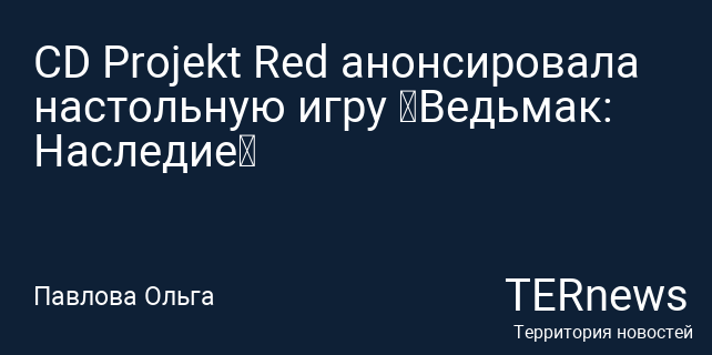 Польская студия CD Projekt RED, совместно с издательством Go On Board, представила новую настольную игру, основанную на популярной вселенной «Ведьмак». Игра под названием «Ведьмак: Наследие» станет третьим совместным проектом этих компаний и вскоре будет запущена краудфандинговая кампания на платформе Gamefound.