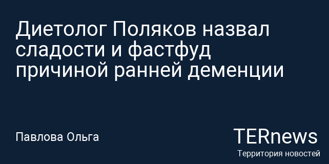 Диетолог Поляков назвал сладости и фастфуд причиной ранней деменции