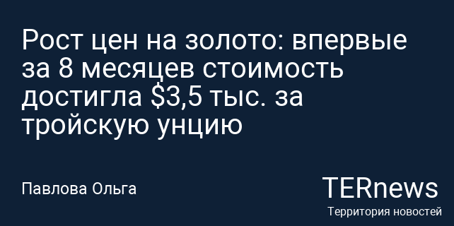 Рост цен на золото: впервые за 8 месяцев стоимость достигла $3,5 тыс. за тройскую унцию