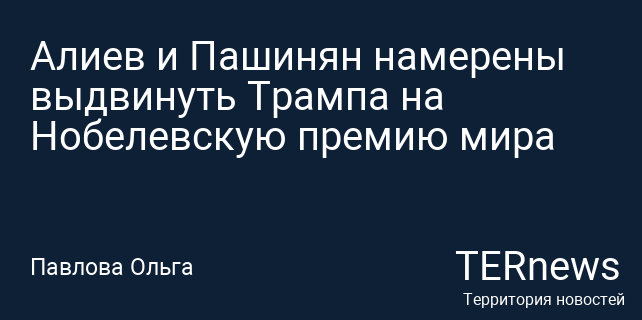 Алиев и Пашинян намерены выдвинуть Трампа на Нобелевскую премию мира