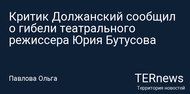 В социальных сетях заместитель художественного руководителя Театра Наций и театральный критик Роман Должанский поделился печальной новостью о трагической гибели Юрия Бутусова. «Мне страшно это писать, но это так. Погиб Юра. Бутусов», — написал он, не уточняя детали происшествия.