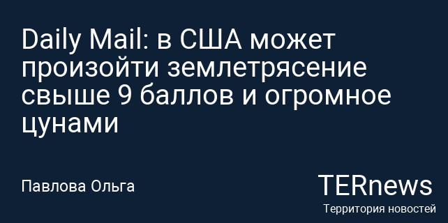 Daily Mail: в США может произойти землетрясение свыше 9 баллов и огромное цунами
