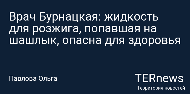 Врач Бурнацкая: жидкость для розжига, попавшая на шашлык, опасна для здоровья
