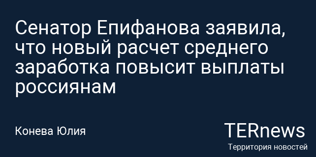 Сенатор Епифанова заявила, что новый расчет среднего заработка повысит выплаты россиянам