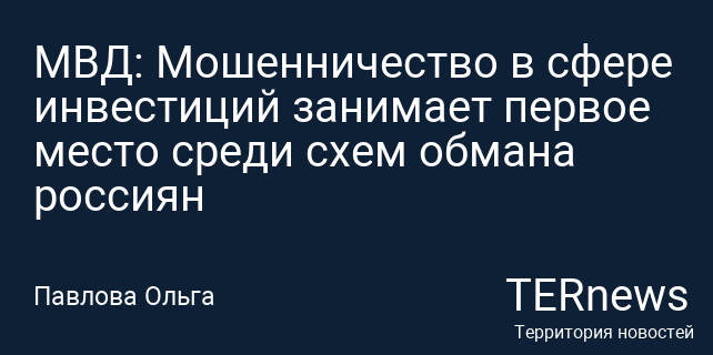 МВД: Мошенничество в сфере инвестиций занимает первое место среди схем обмана россиян