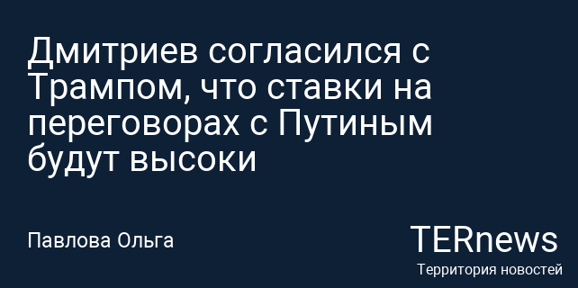 Дмитриев согласился с Трампом, что ставки на переговорах с Путиным будут высоки