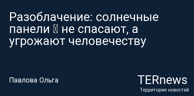 Разоблачение: солнечные панели — не спасают, а угрожают человечеству
