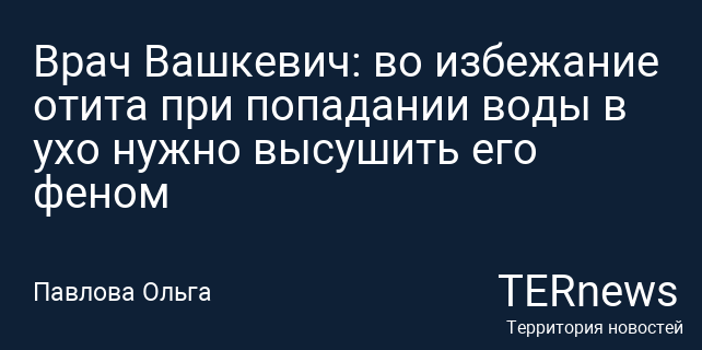 Врач Вашкевич: во избежание отита при попадании воды в ухо нужно высушить его феном