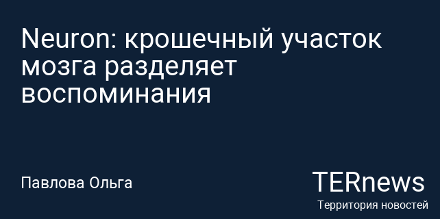 Neuron: крошечный участок мозга разделяет воспоминания