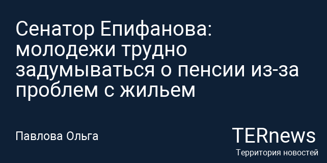 Сенатор Епифанова: молодежи трудно задумываться о пенсии из-за проблем с жильем