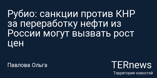 Госсекретарь Марко Рубио выразил опасения, что введение вторичных санкций против Китая за переработку нефти из России может спровоцировать повышение цен на энергоносители в Соединенных Штатах. В интервью Fox News он отметил, что несмотря на возможные ограничения, Китай продолжит перерабатывать российскую нефть, и она все равно окажется на мировом рынке. По его словам, это приведет к тому, что покупатели вынуждены будут платить больше за данный ресурс, или искать альтернативные источники поставок.