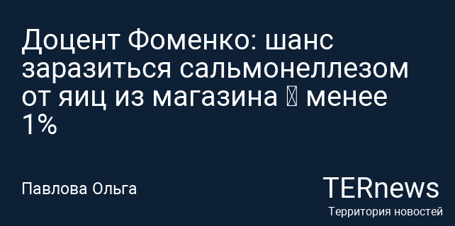 Доцент Фоменко: шанс заразиться сальмонеллезом от яиц из магазина — менее 1%