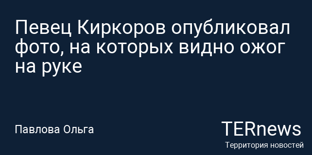 Певец Киркоров опубликовал фото, на которых видно ожог на руке